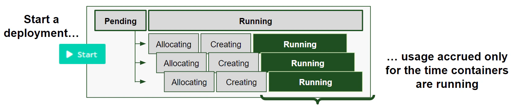 SaladCloud bills for the time that the selected hardware resources are dedicated to your application, although it is common to see hourly rates listed on Salad, usage is tracked per second.🎉 Never Pay for Cold Boot Time Again You only pay for the time that the hardware is available to used by your application, you will never pay for Cold Boot time.