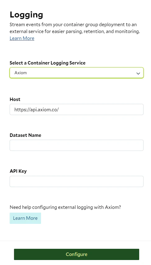 📘 Don’t have an external logging provider? Check out the Container Logs feature in the SaladCloud Portal.