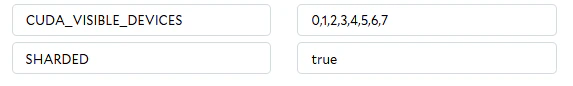 CUDA_VISIBLE_DEVICES=0,1,2,3,4,5,6,7Required to expose multiple GPUs to the TGI container. By default, TGI will only detect one GPU unless this variable is set. You can also use this to run multiple workloads on a single 8-GPU node by isolating which GPUs are used by each container. To specify which GPUs TGI should use, provide a list of integers as a value.