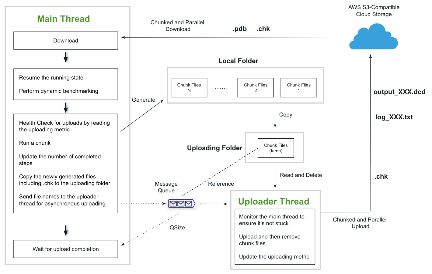 - Introduce a dedicated uploader thread with task queue to offload upload operations from the main thread, ensuring that simulation execution remains unblocked.