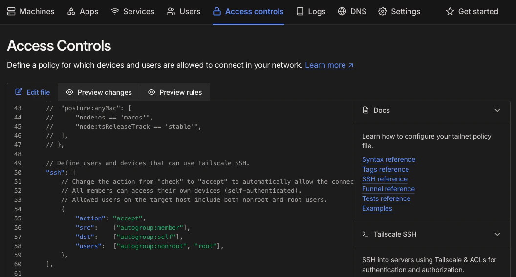Enabling Tailscale SSH