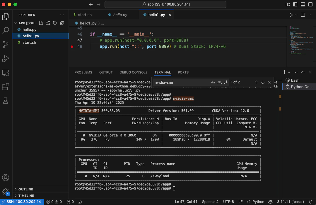 AI Developers can use Visual Studio Code Remote - SSH extension to securely access Salad nodes via Tailscale SSH, enabling you to fully leverage VS Code’s development features along with the power of SaladCloud GPUs.