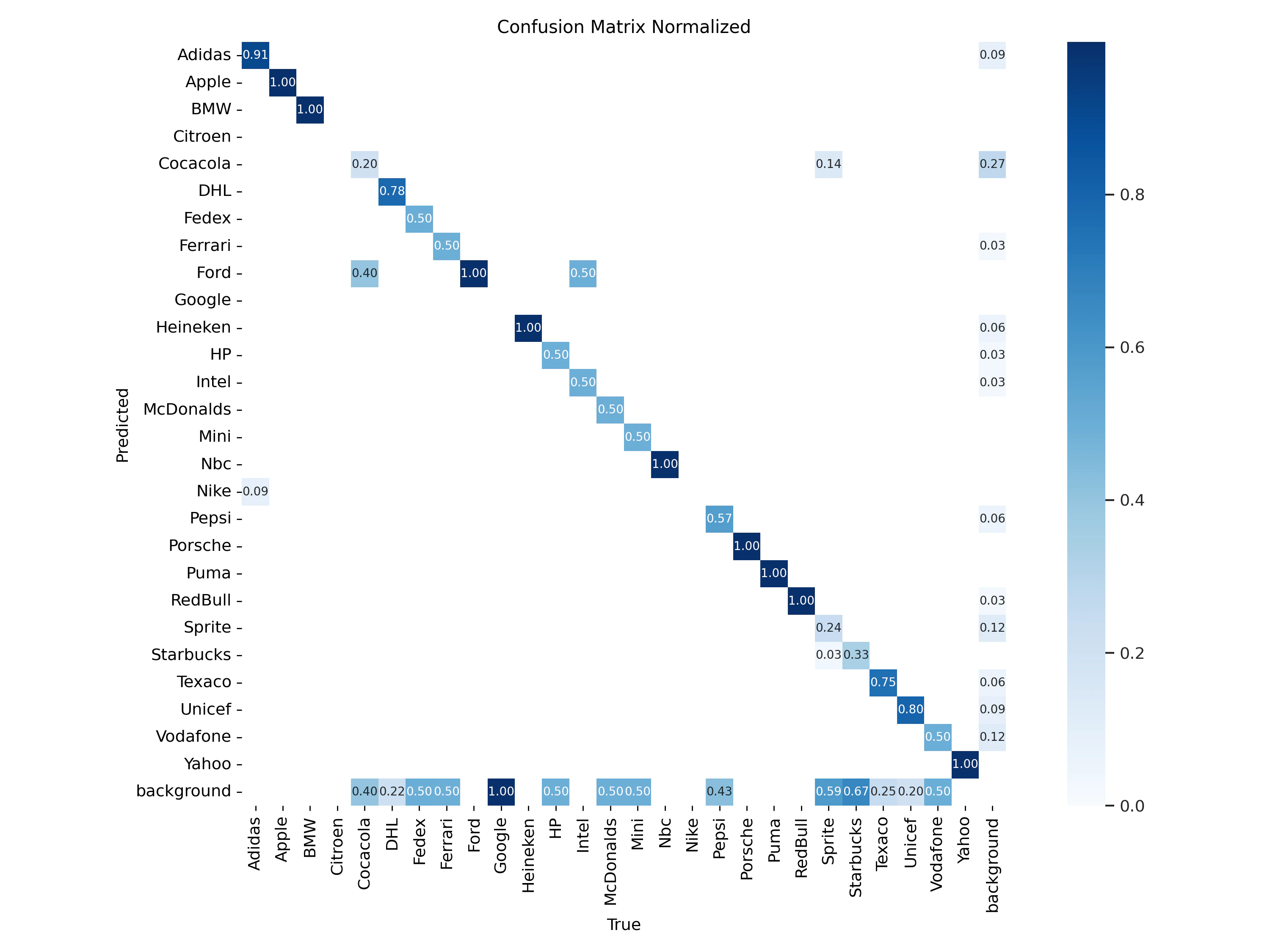 The first model in our comparative study is the YOLOv8 Nano, renowned for its compact yet powerful architecture. With 3.2 million parameters, it is the smallest model in the YOLOv8 family, yet capable of real-time performance, even on CPU-based systems. Duration of Training: Training session for the YOLOv8 Nano model was completed in just about 10 minutes. Which gets us to about 5 cents for training a model. Training results: once our model is trained we can find all the weight along with training and validation results in our Azure storage. We will first check the confusion matrix: