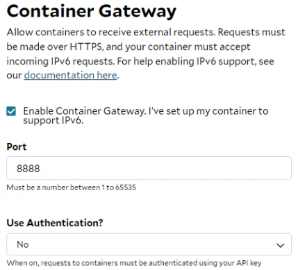 - All container instances, regardless of their locations, are currently exposed by the container gateway in the U.S, which may introduce additional latency for instances in other regions. Ensure that your applications can tolerate this delay and jitter.